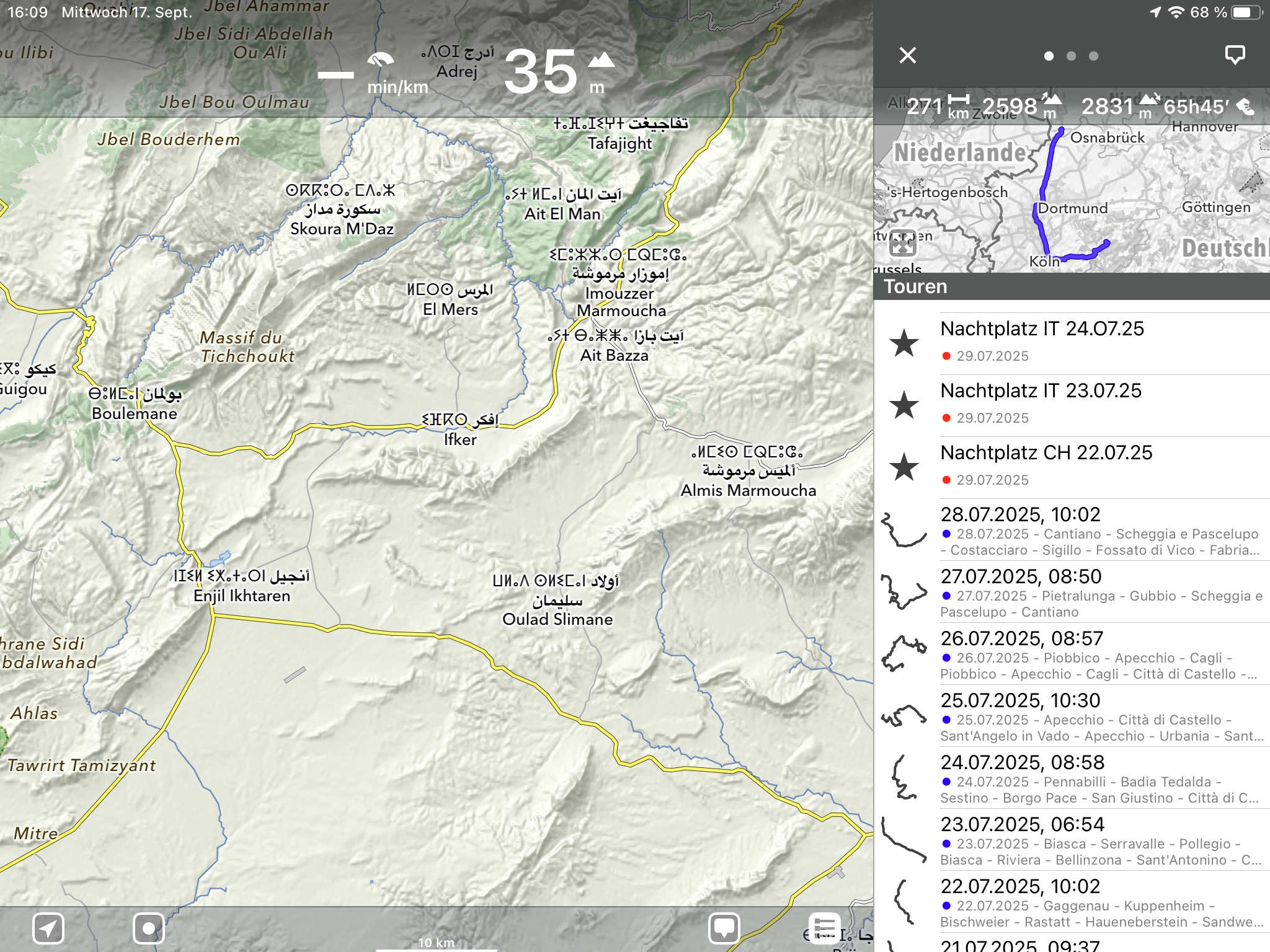Auf dem iPhone wird die Tourverwaltung aus Platzgründen in einem separaten Bildschirm angezeigt. Auf dem Ipad werden die Touren in der rechten Bildschirmhälfte angezeigt.