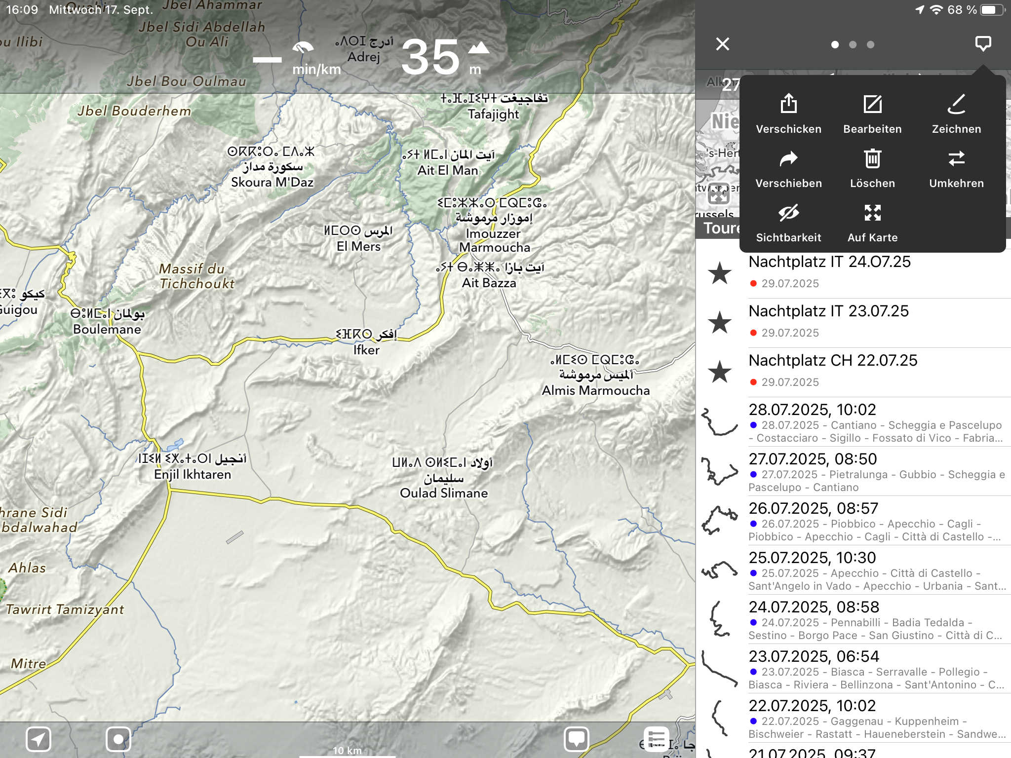 Touren löschen kannst du entweder über das Menü oder du wischst auf dem entsprechenden Track oder Wegpunkt nach links und kannst diesen löschen.