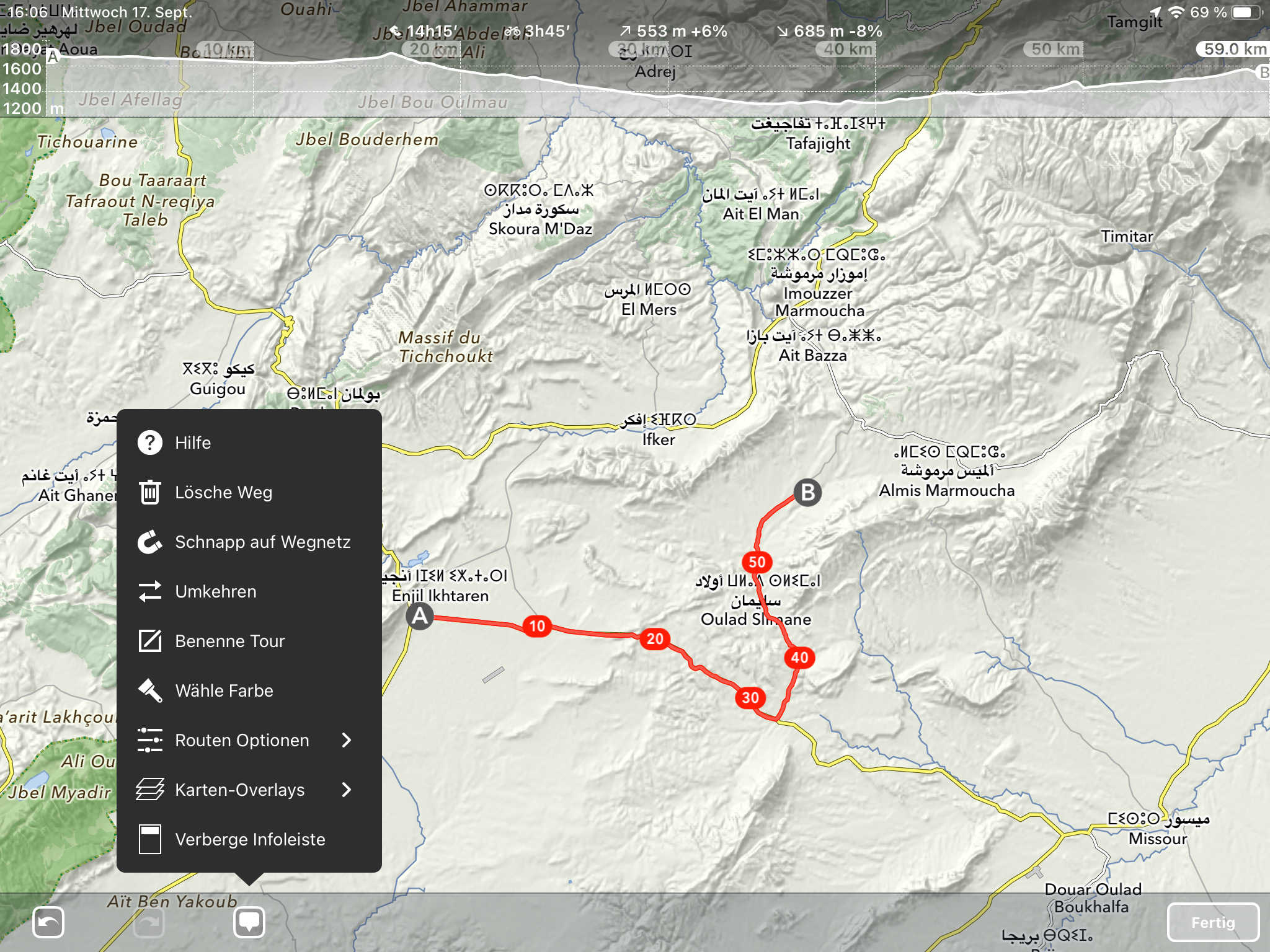 Du bist zum Beispiel in Marokko und möchtest die Tour für den nächsten Tag planen.