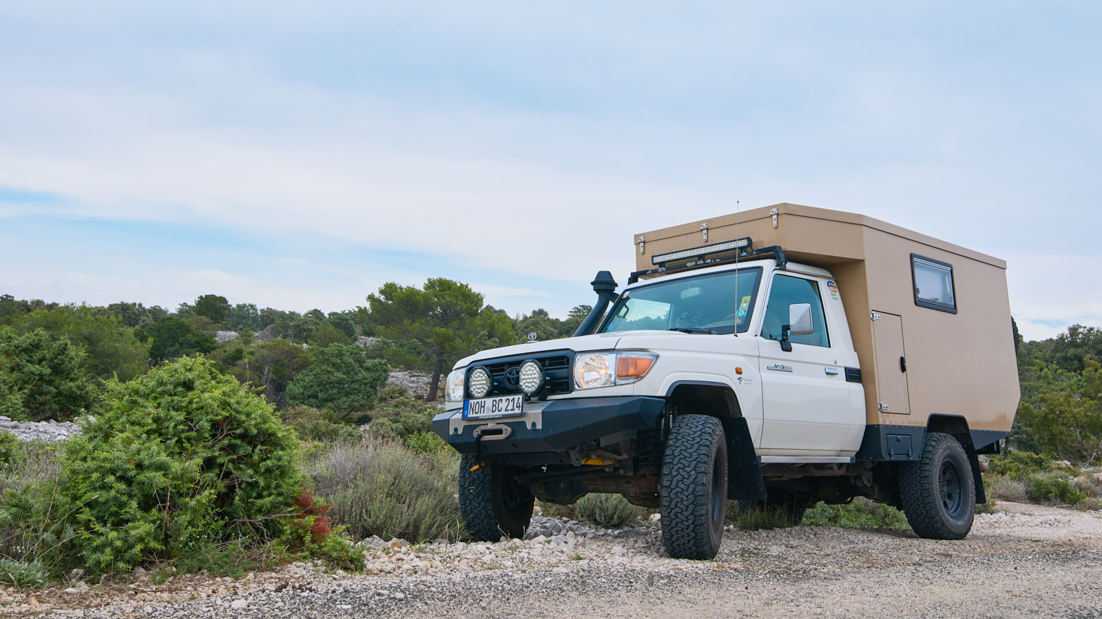 Wähle einen Platz aus, bei der dein Fahrzeug zur Geltung kommt. Hierbei achte zunächst auf den Untergrund. Ein voll aufgerüsteter Offroadcamper auf dem geteerten Parkplatz oder der Straße wirkt uncool. Sollte sich das nicht vermeiden lassen, so musst du bei der Perspektive (folgt später nochmal) darauf achten, die Standfläche auszublenden.