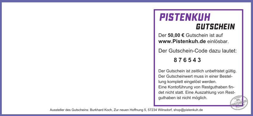 Der Gutschein gilt für alle Produkte auf unserer Homepage und ist zeitlich unbegrenzt gültig.
