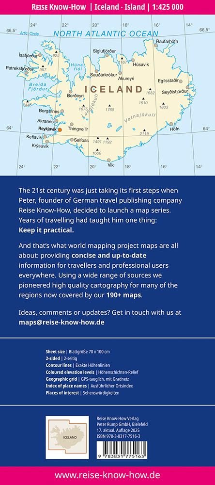 Hochreißfeste und 100% wasserfeste Landkarte „Island“ aus der Serie world mapping project, erschienen im Reise Know-How Verlag.