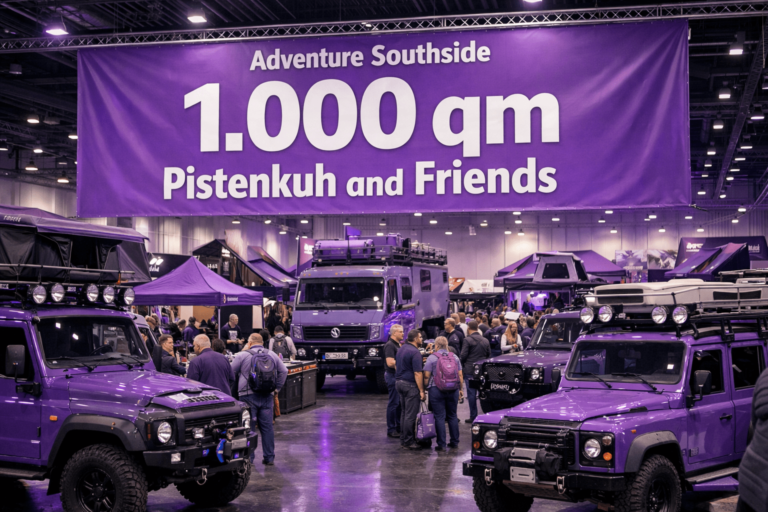 12.02.2026 Boom – Wir hauen mal einen raus! Auf der Adventure Southside stellen wir unser Projekt „Pistenkuh 3.0“ vor. Mit unseren Freunden und Partnern haben wir gemeinsam in der Halle A5 knapp 1.000 qm Ausstellungsfläche. Im violetten Bereich der Halle A5 findet ihr die Firmen, deren Qualität und Service wir im Expeditionsfahrzeugbau vertrauen. In der Halle A5 geht’s ab. Termin eintragen!!! Adventure Southside 10.–12. Juli 2026