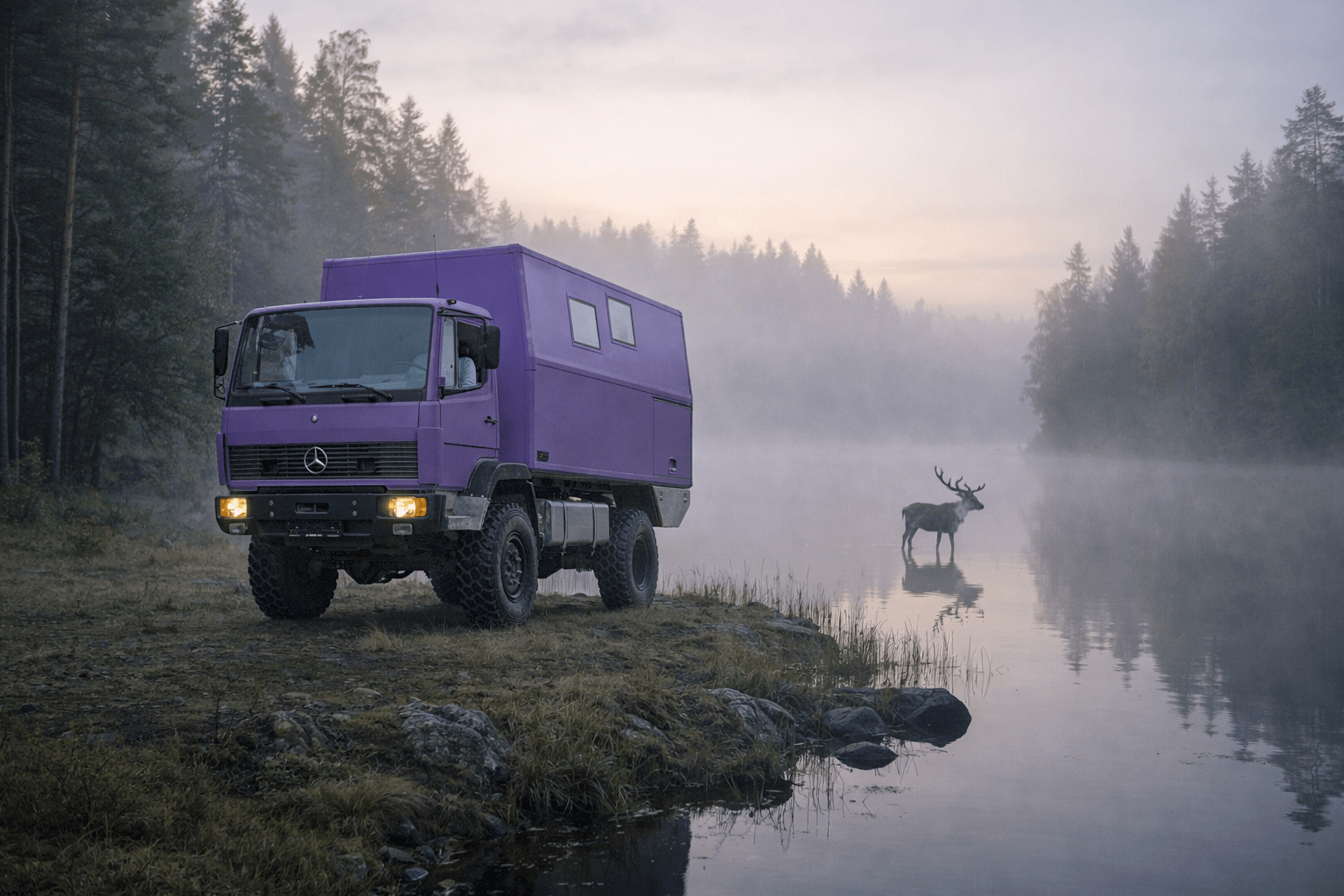 08.02.2026 Planungen 2026 Pistenkuh 3.0, Gottlieb der Benz wird mit hoher Wahrscheinlichkeit im Sommer fertig werden. Aktuell steht er bei Schreinerei Reuter – Lennestadt und bekommt den Innenausbau. Die große Premiere wird auf der Adventure Southside in Friedrichshafen vom 10. bis 12. Juli 2026 – TERMIN EINTRAGEN – stattfinden. Hier haben wir noch einen Kracher in petto. (in petto = kirchliche Geheimhaltung) Dazu in den nächsten Tagen mehr. Die Adventure Southside ist gleichzeitig der Startpunkt unserer Sommerreise. Diesmal nicht mit dem Defender, sondern mit dem Benz. Es geht über Polen, das Baltikum und Finnland hoch in den Norden und über Norwegen und Schweden nach Dänemark. Termingenau werden wir auf der Adventure Northside am 18. Sept. 2026 zurück sein. Von dort geht es zu unserer Tochter und deren Familie und Tage später in den Sand für den Rest des Jahres. Ob der Sand in Saudi-Arabien liegt oder in Marokko, entscheiden wir im Herbst. Soweit die Pläne für dieses Jahr. (Die Bilder sind mit KI erzeugt, weil ich von unserem Benz bisher nur ein brauchbares Foto habe, ab Sommer sind die Bilder dann „echt“.)